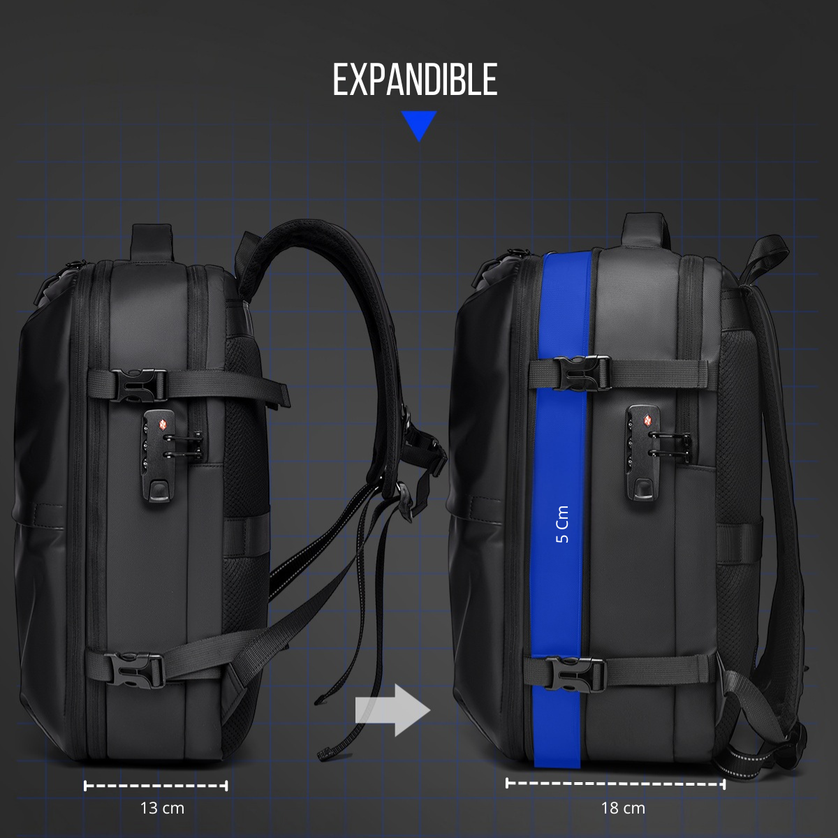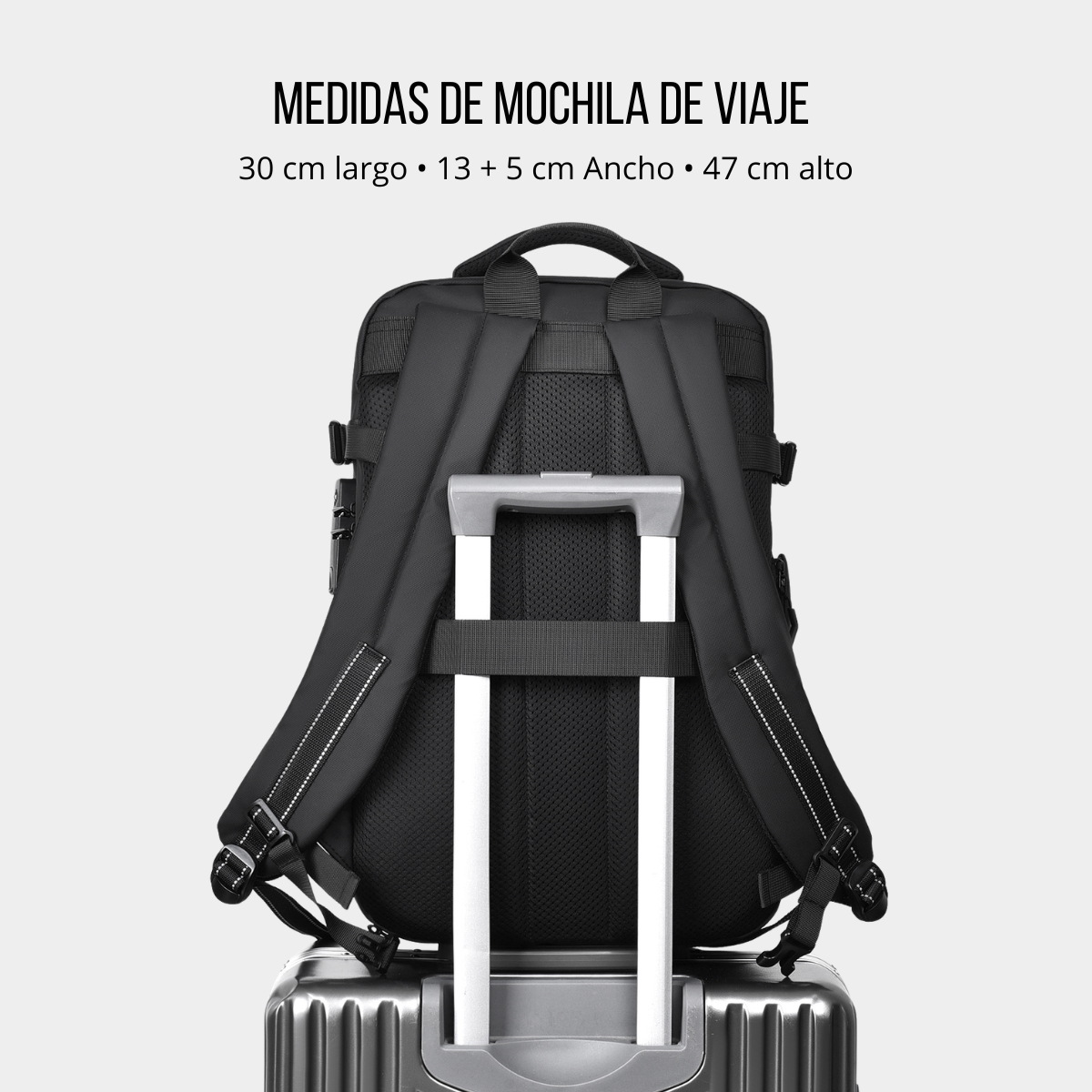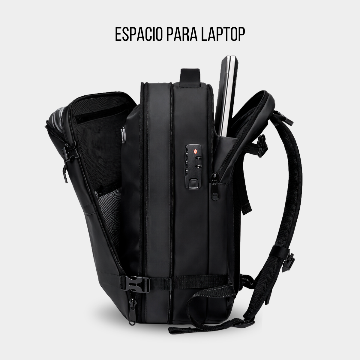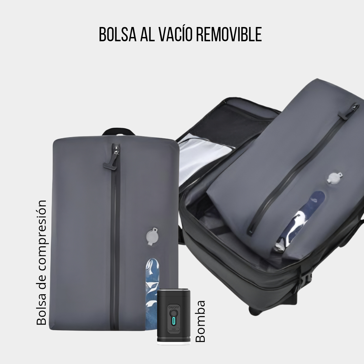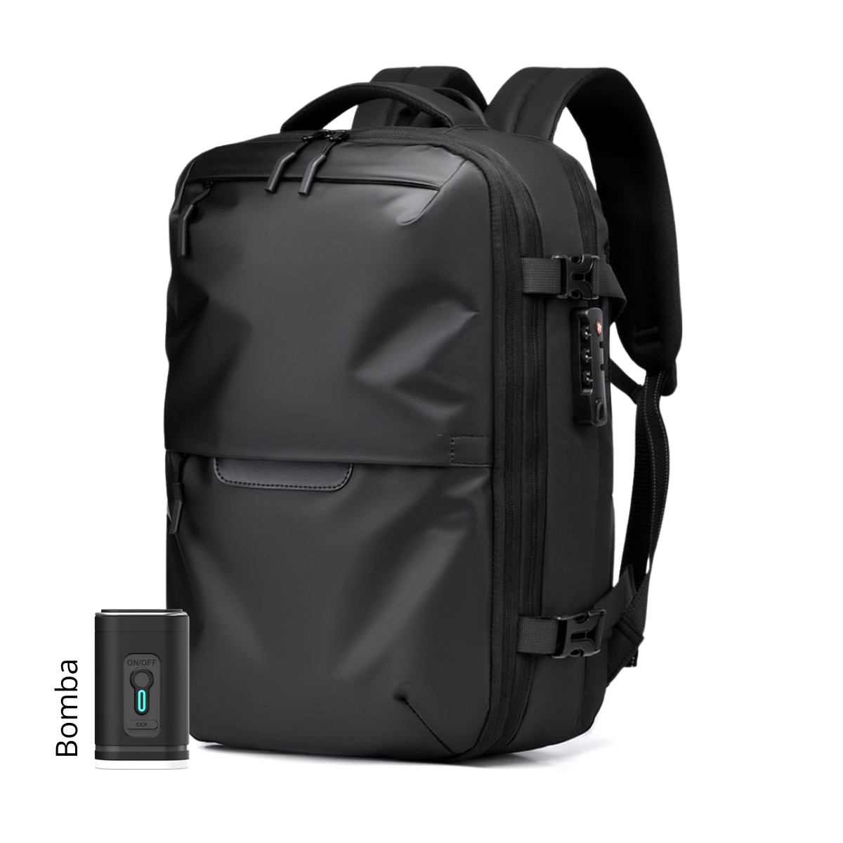 Diseñada para viajeros modernos, esta mochila cuenta con un sistema de compresión al vacío con bomba integrada, que reduce el volumen de tu ropa para que lleves mucho más.