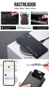 Esta tarjeta rastreadora ultradelgada, con tamaño tipo tarjeta de crédito, encaja perfecto en tarjeteros, carteras o equipaje, sin sumar volumen.